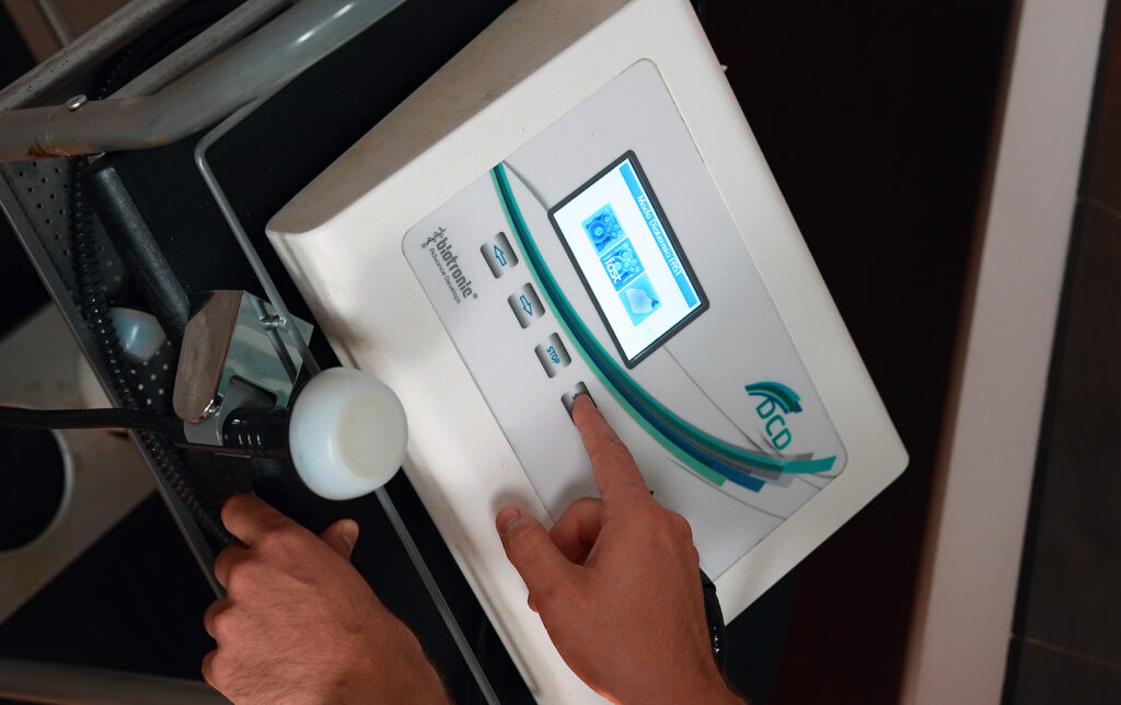 Una vez el cuerpo está estabilizado, se aplica tecnología INDIBA, que utiliza radiofrecuencia para acelerar la regeneración celular, reducir la inflamación y mejorar la circulación.